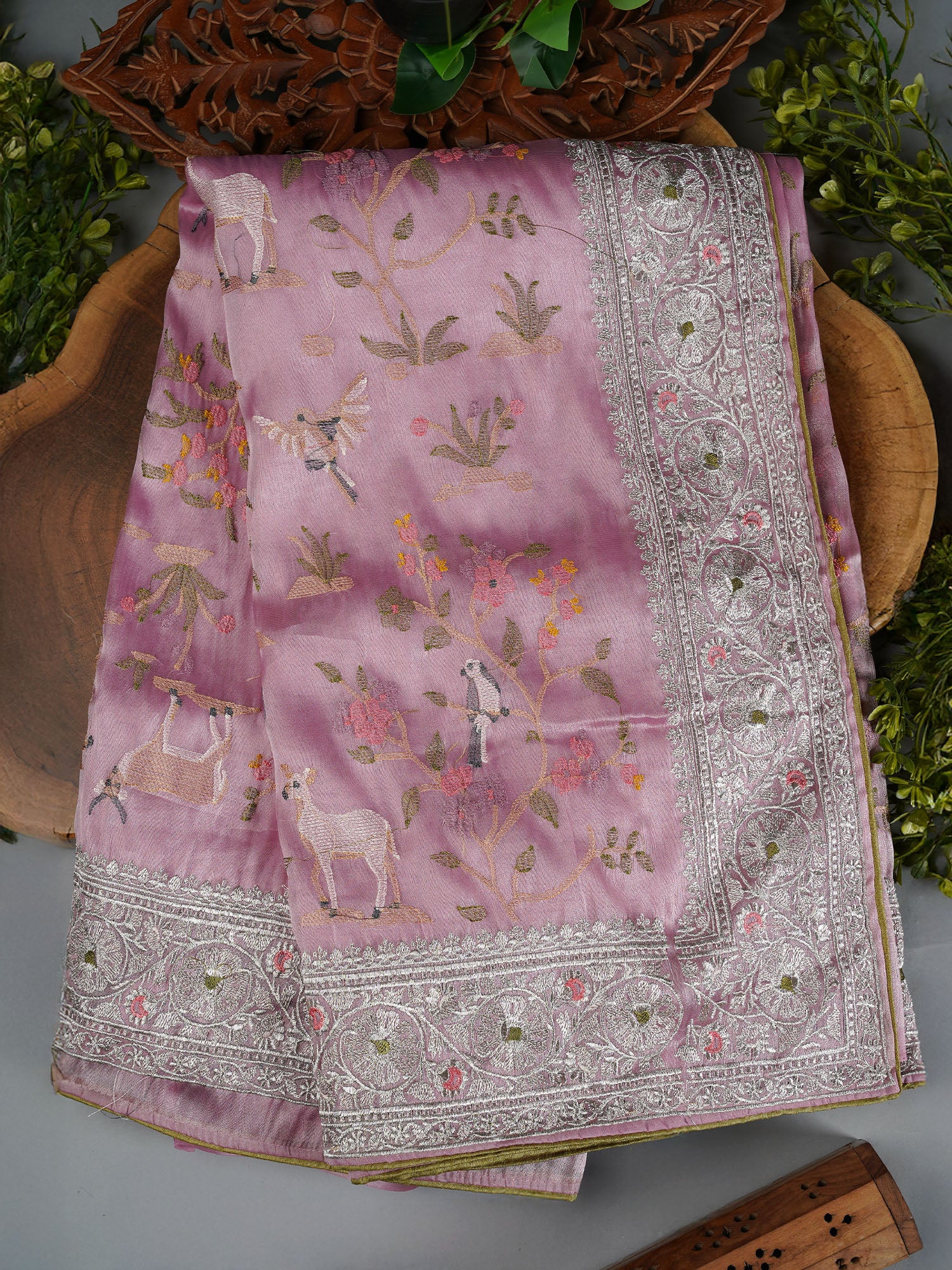 Soft Tissue Organza Saree with Zari & Thread Embroidery Pichuai Design - Baby Pink