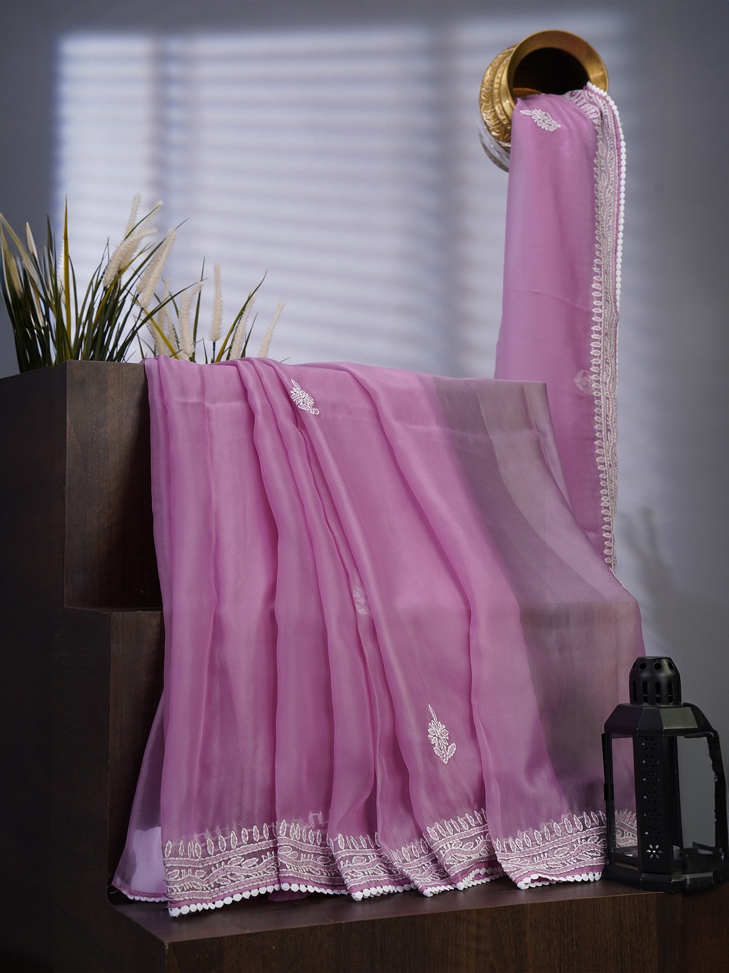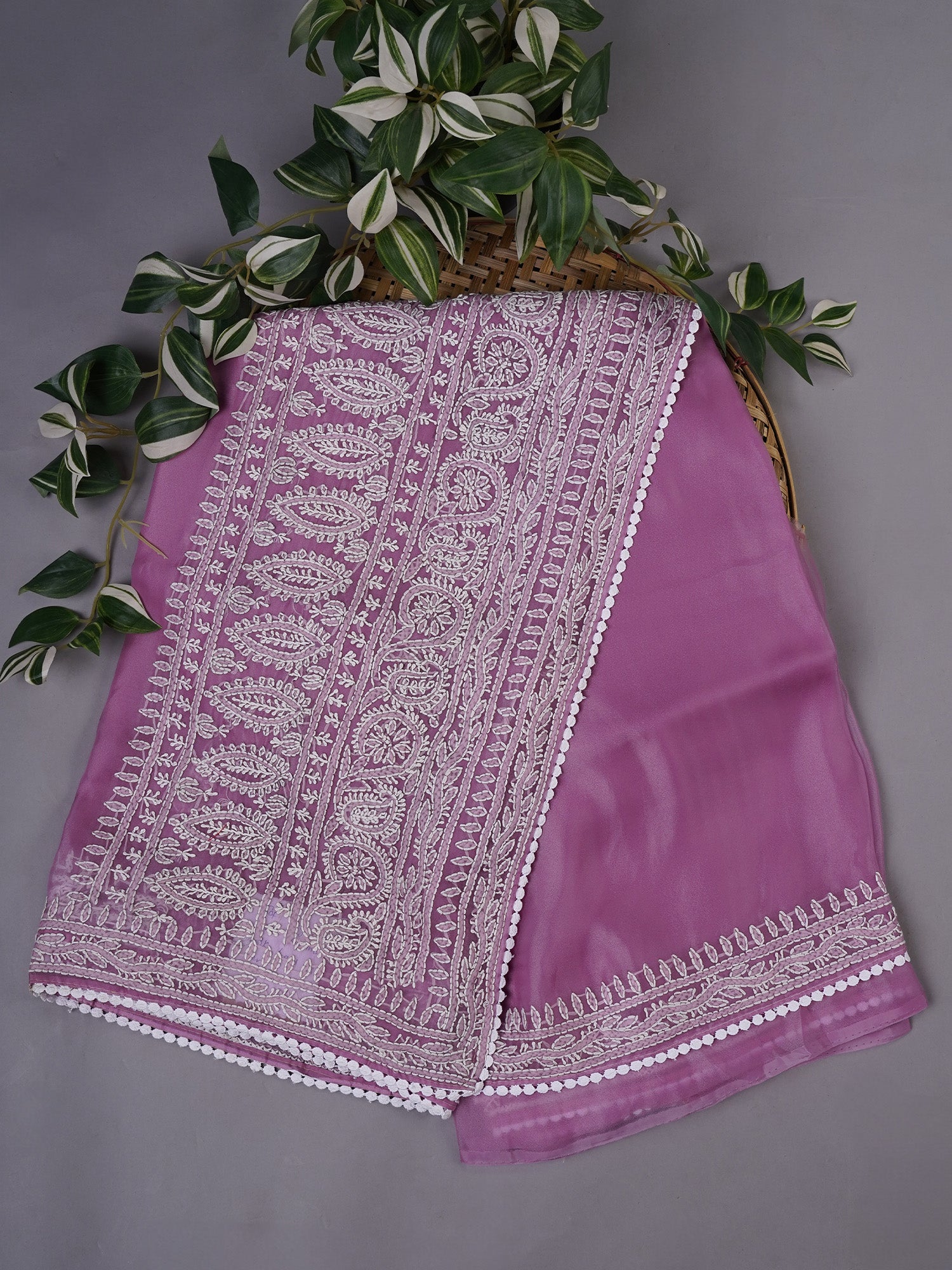 Soft Tissue Organza Silk with Kantha Work Lace Border - Lavender