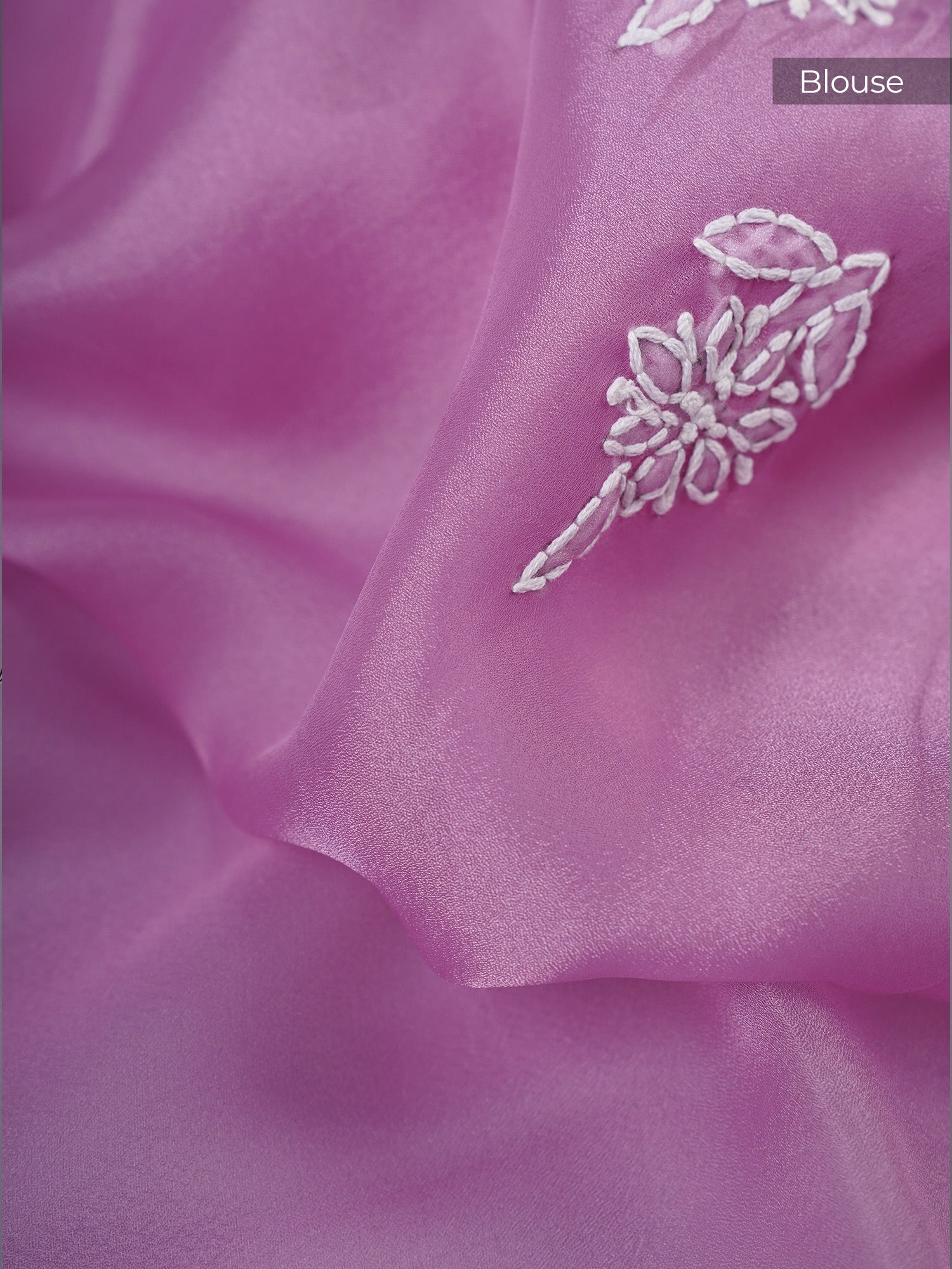 Experience the delicate elegance of our Soft Tissue Organza Silk in a serene lavender hue, accentuated by intricate Kantha work...