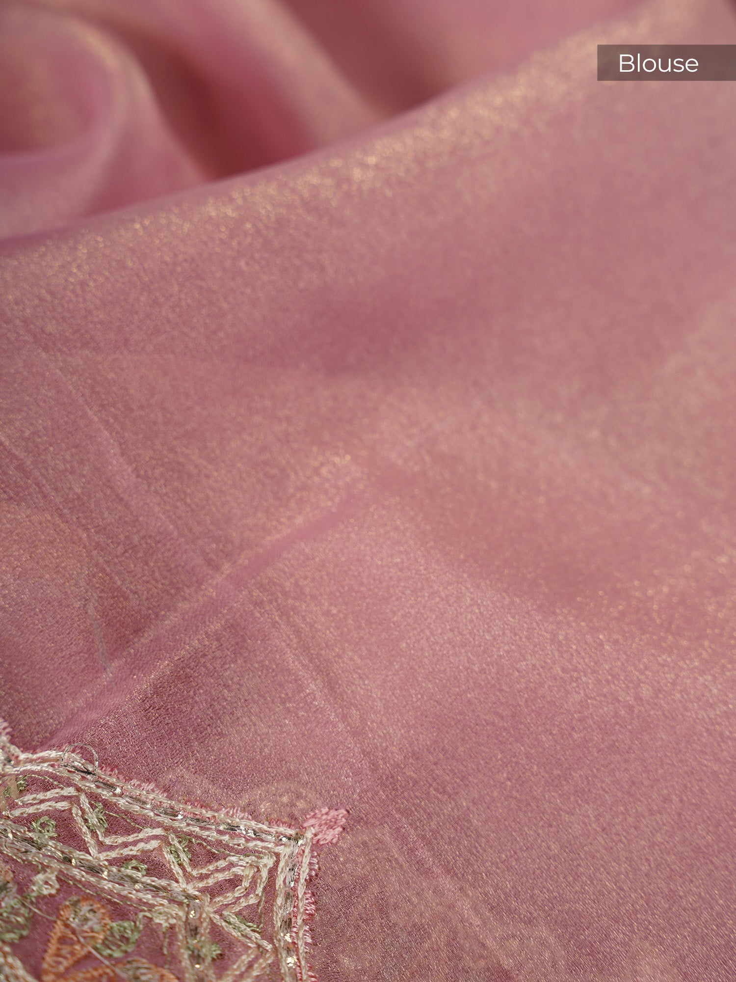 Soft Tissue Organza With Thread Embroidery Butties With Scallop Border - Pink