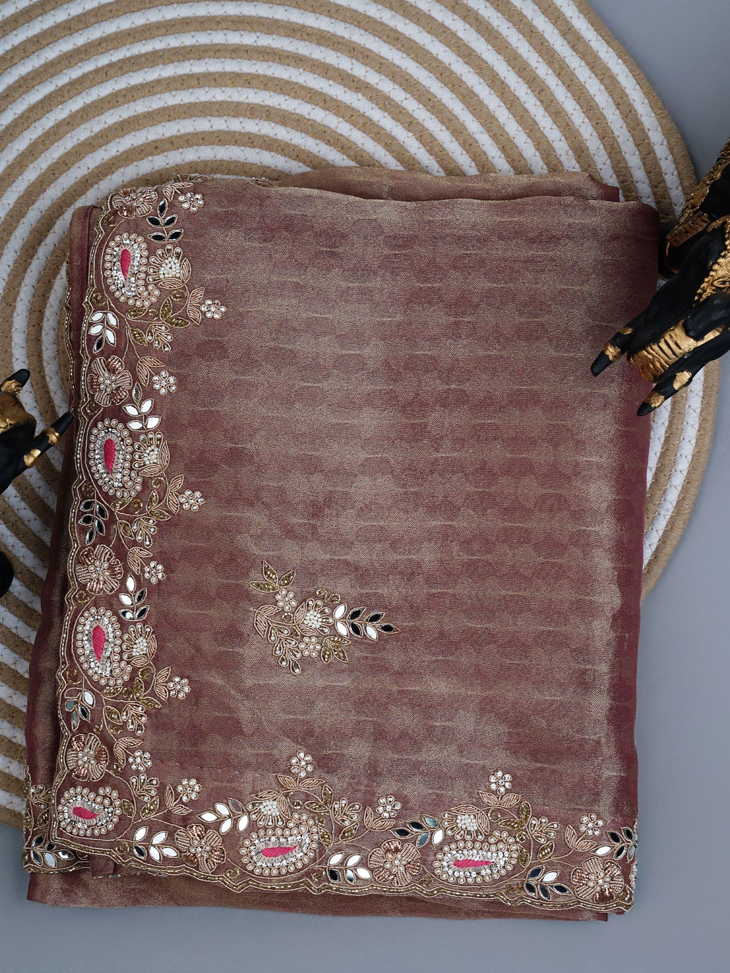 Soft tissue saree with Embroidery work butties and border - Bronze