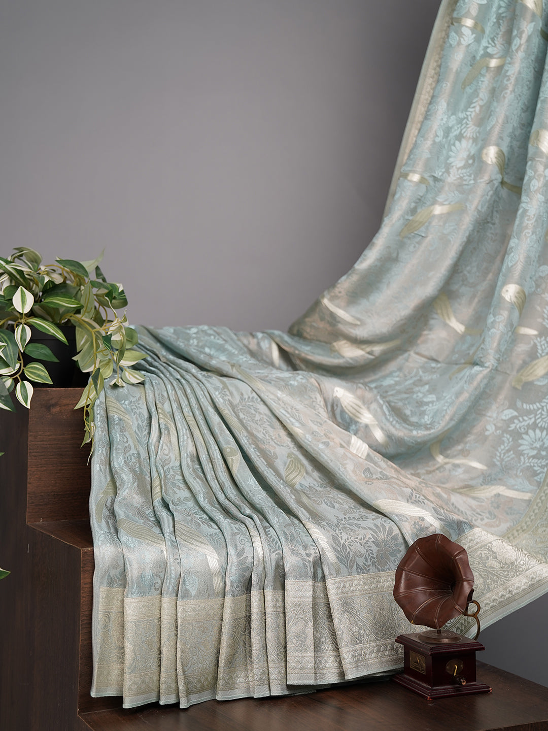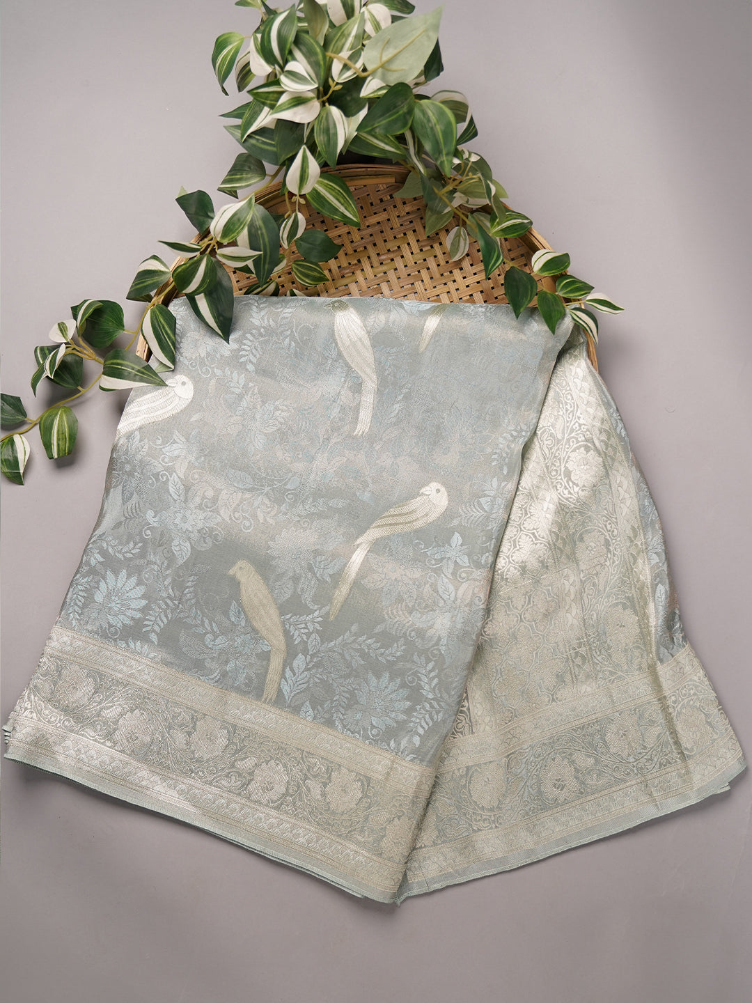 Tissue Banarasi Silk with All Over Self Weaving with Light Gold Zari Border