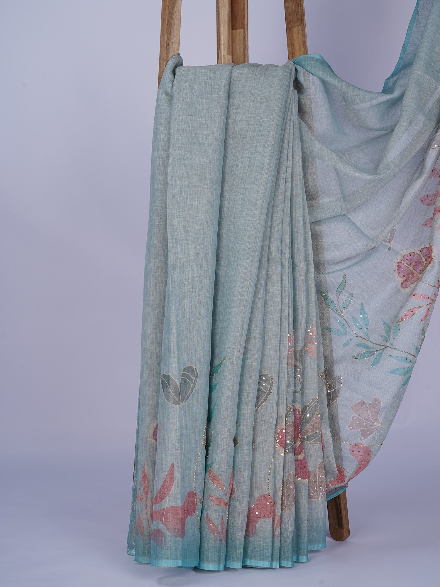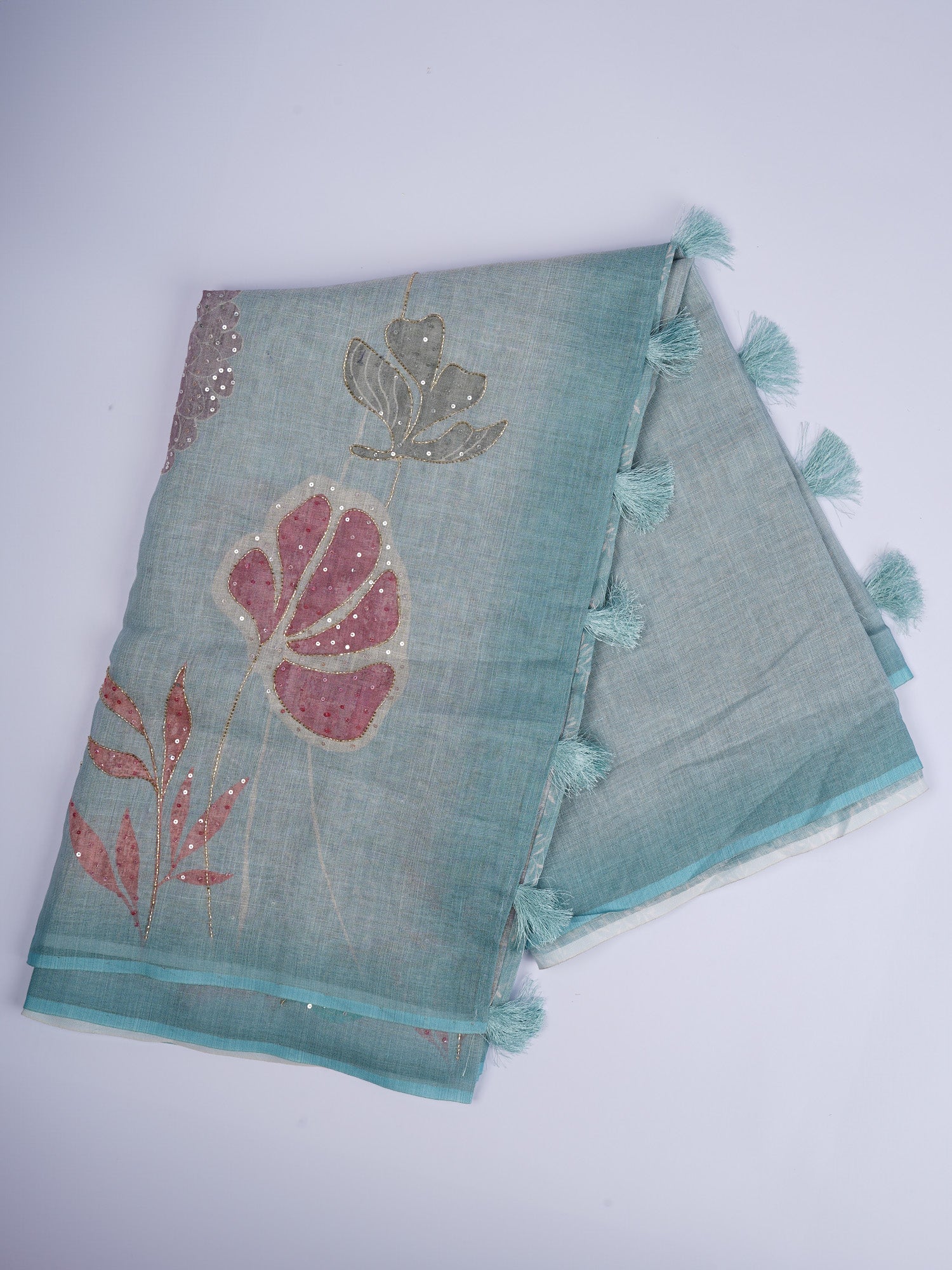 Tissue Chanderi Silk with Floral Print and Aari Work