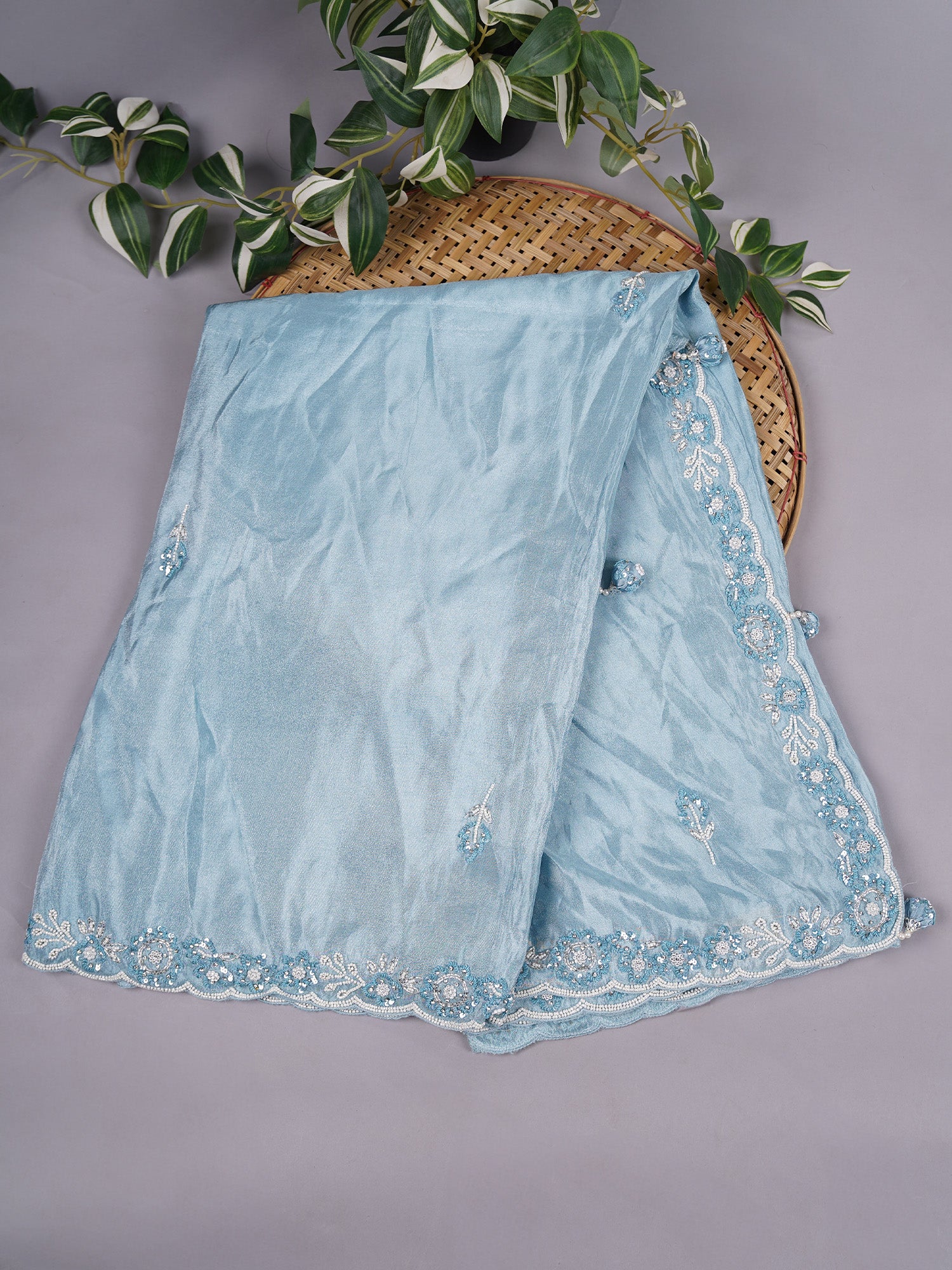 Tissue Crepe Embroidery and Handwork Butties with Scallop Border