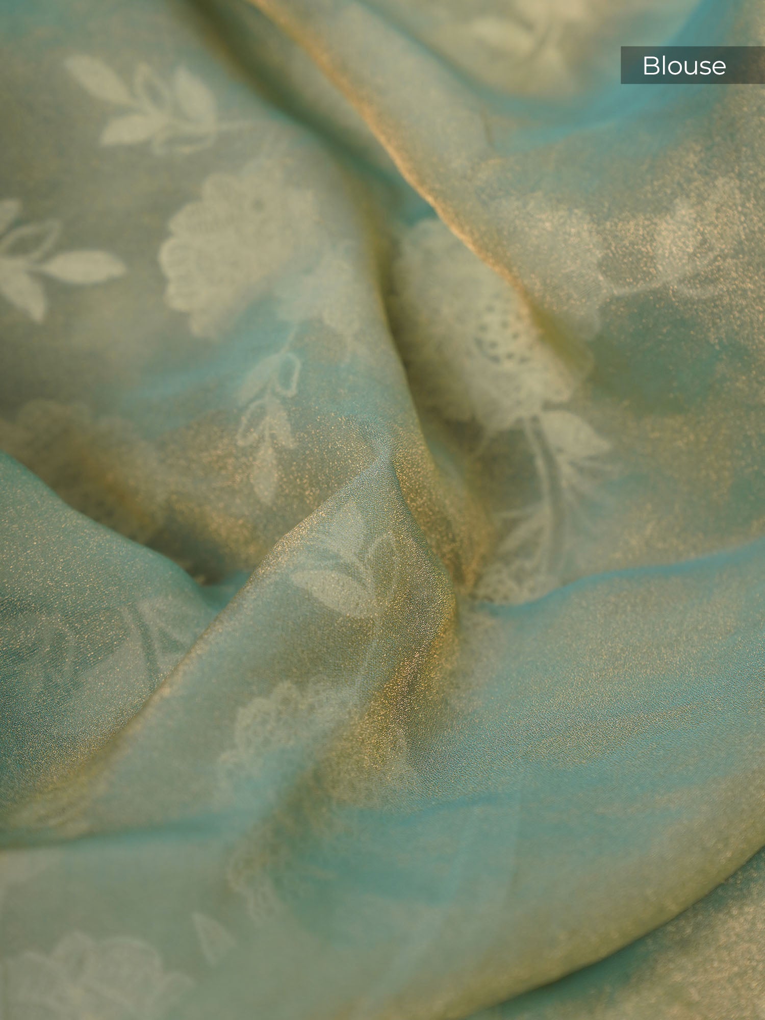 This sea green tissue georgette saree showcases exquisite chicken kari embroidery woven throughout, offering a refined texture and intricate craftsmanship....
