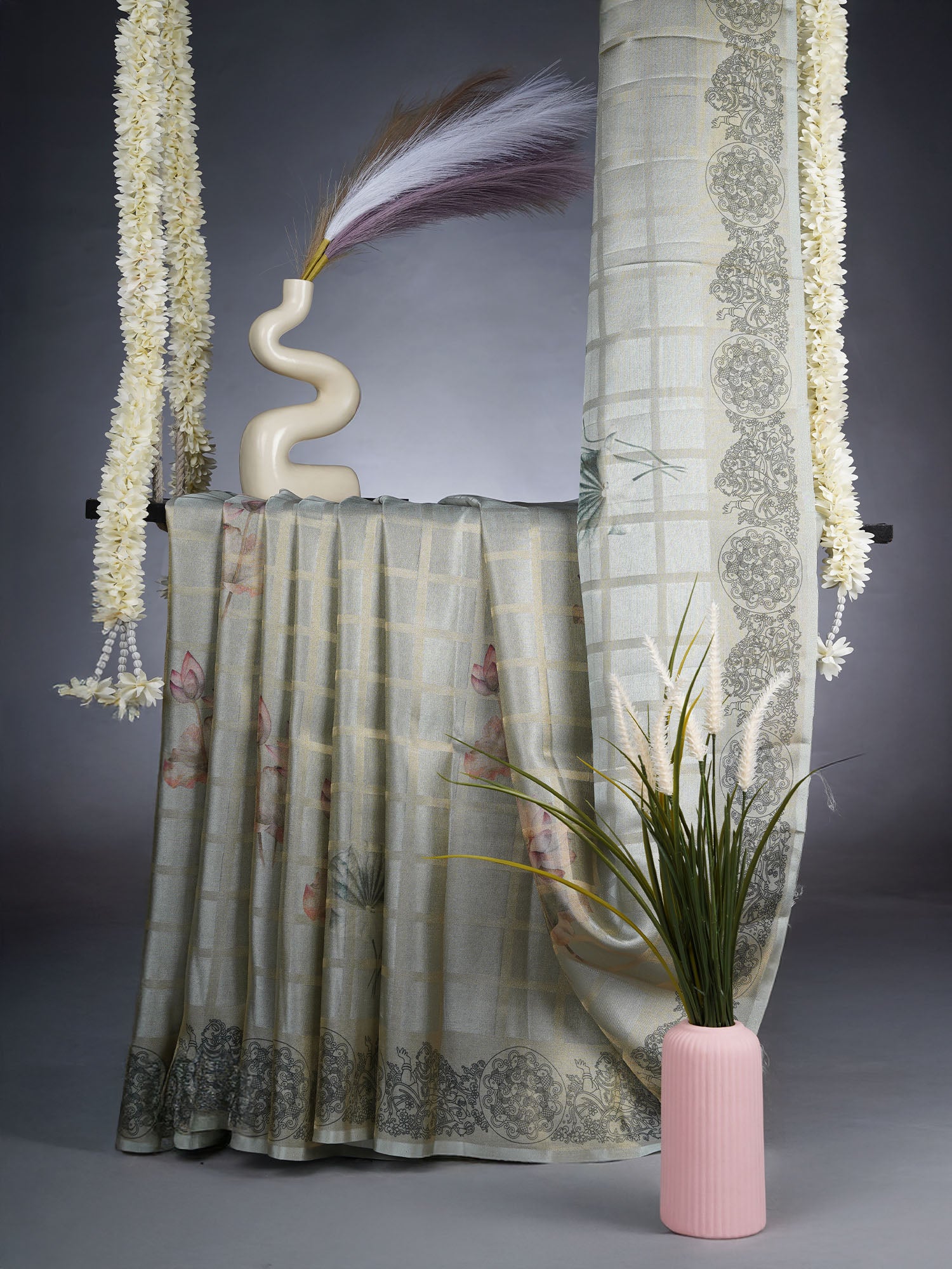 Tissue Georgette Saree With Digital Floral Print - Mint Green