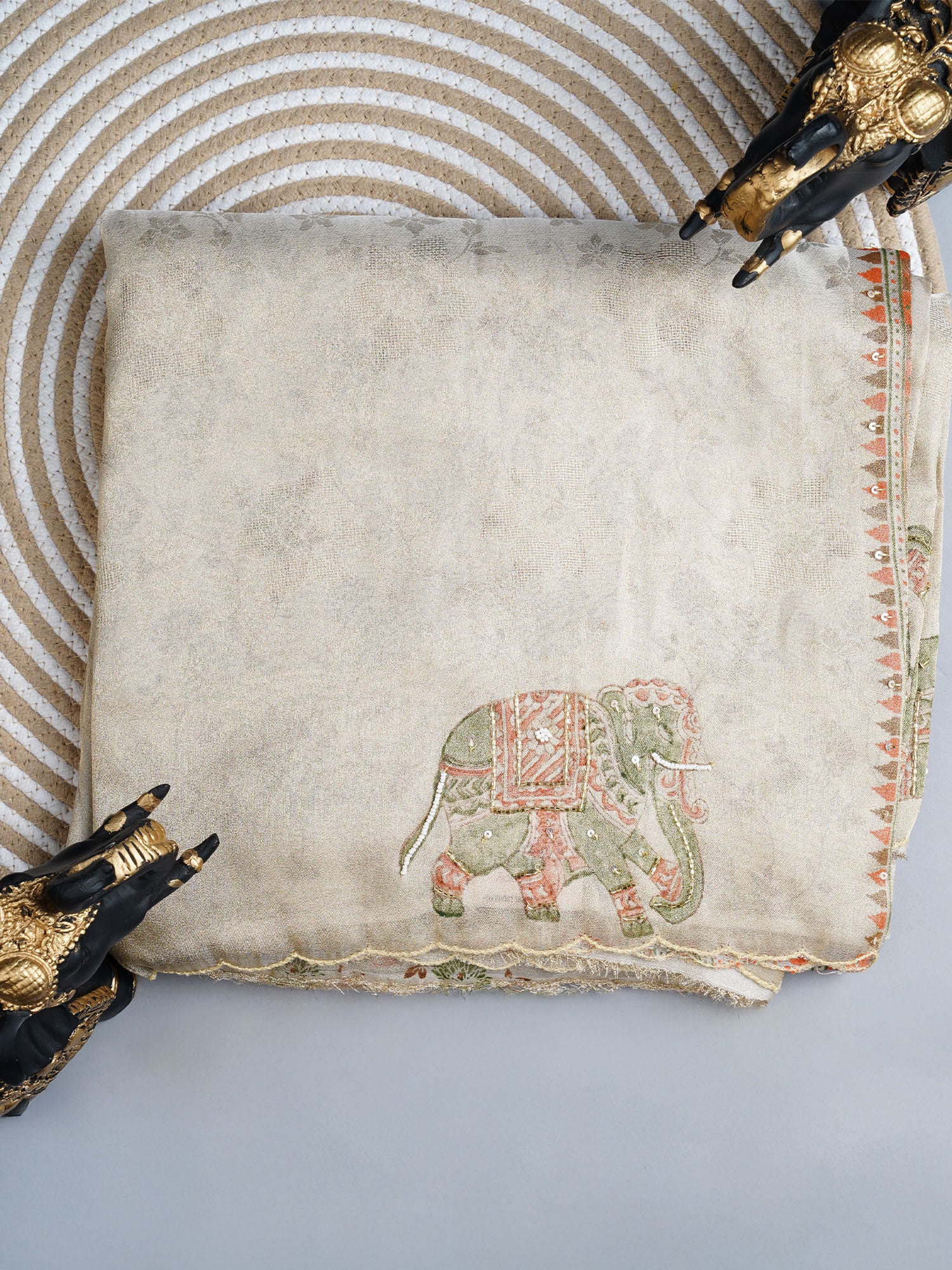Tissue Georgette saree with print butties and scallop border - Tan