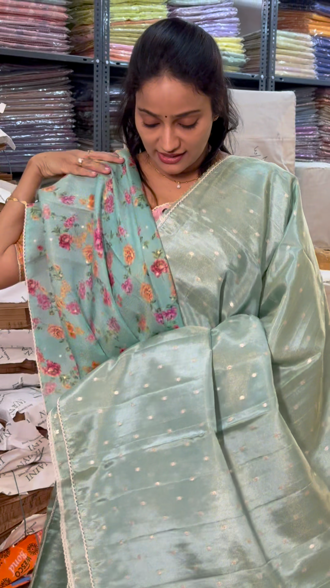 Dive into elegance with this stunning sea green tissue georgette saree, where delicate craftsmanship meets timeless charm. The lightweight fabric drapes beautifully, perfect for those warm days when you want to look effortlessly graceful. Adorned with intricate small golden buttes along the border, this saree adds just the right sparkle to elevate your everyday look or special occasion. Whether you're heading to a celebration or simply want to feel fabulous, this sea green beauty is your go-to companion for turning heads with understated sophistication.