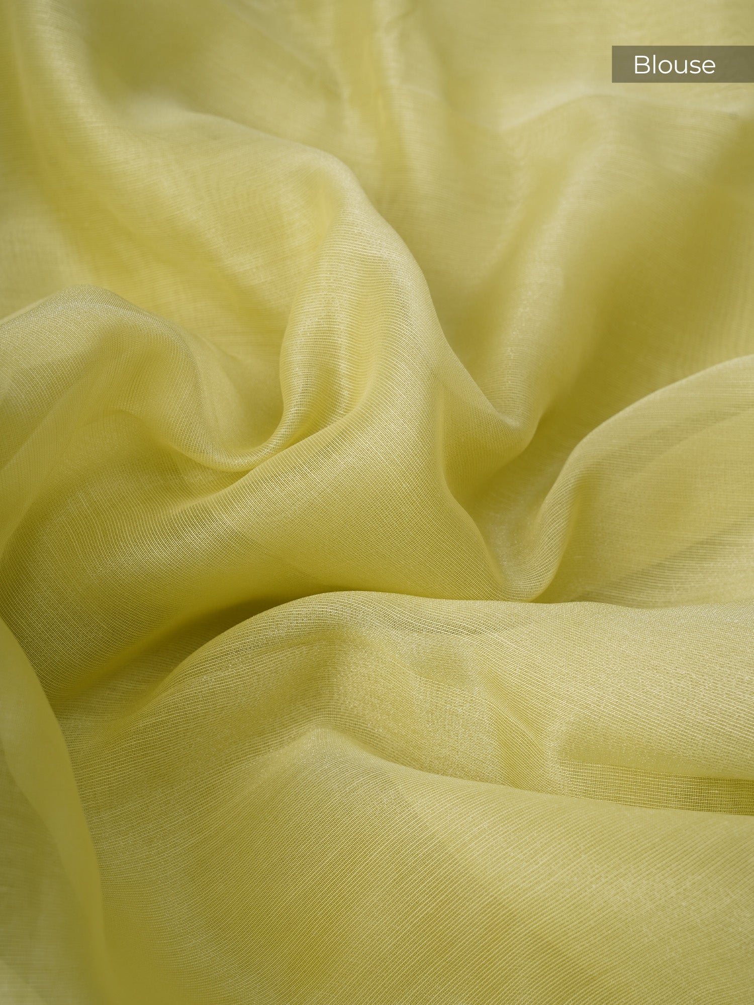 Drape yourself in understated elegance with this tissue linen saree that whispers sophistication. The delicate scallop border adds a charming,...