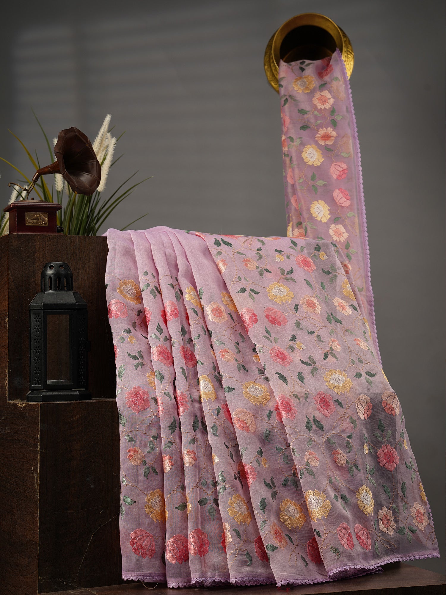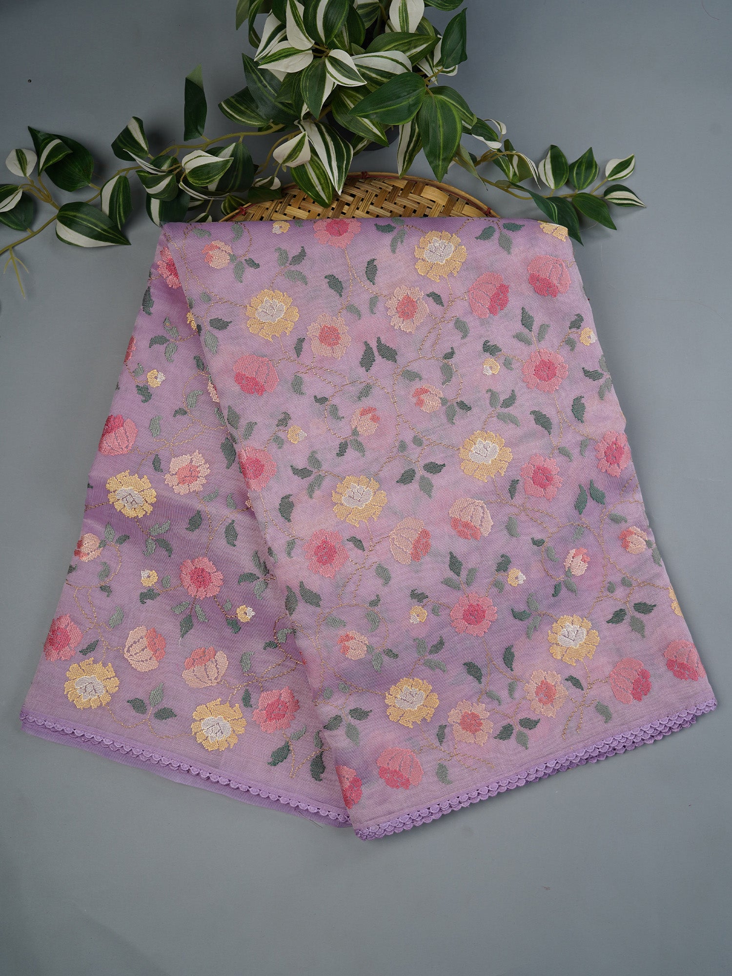 Drape yourself in dreamy lavender elegance with this stunning tissue linen saree! Featuring delicate thread embroidery that dances across the fabric and a charming lace border that adds just the right touch of sophistication, this saree is perfect for those who love blending tradition with a hint of playful flair. The lightweight tissue linen keeps you cool and comfortable while the intricate embroidery work showcases timeless craftsmanship. Whether you're heading to a celebration or a casual gathering, this lavender beauty is your go-to companion for effortless grace and style.