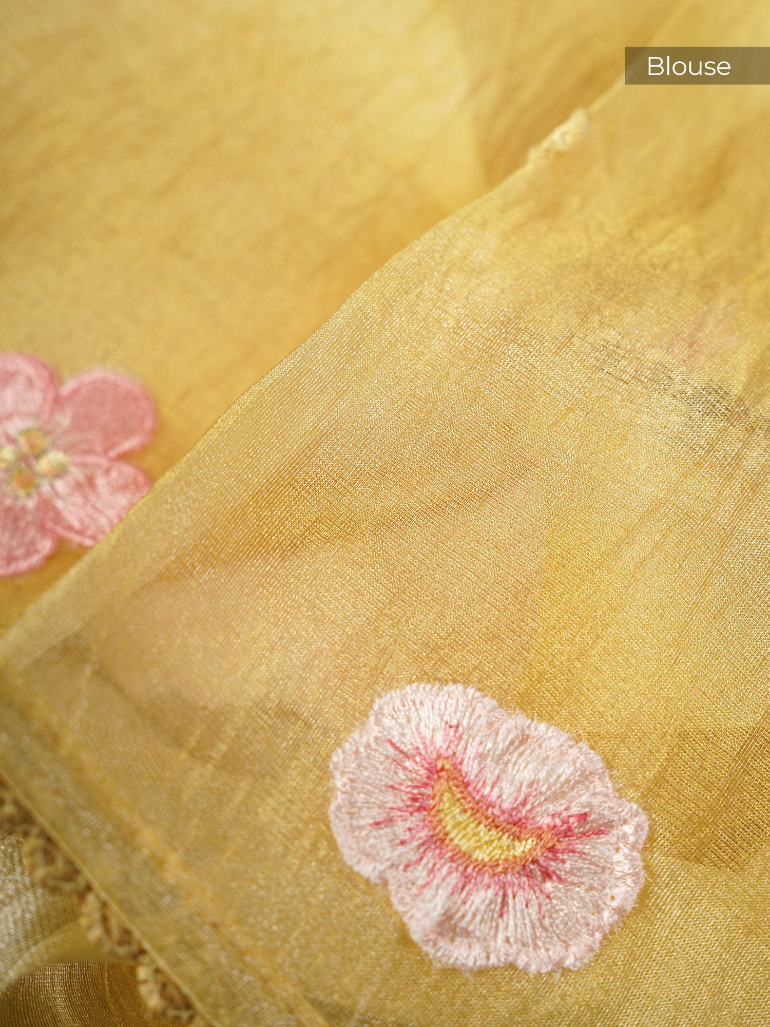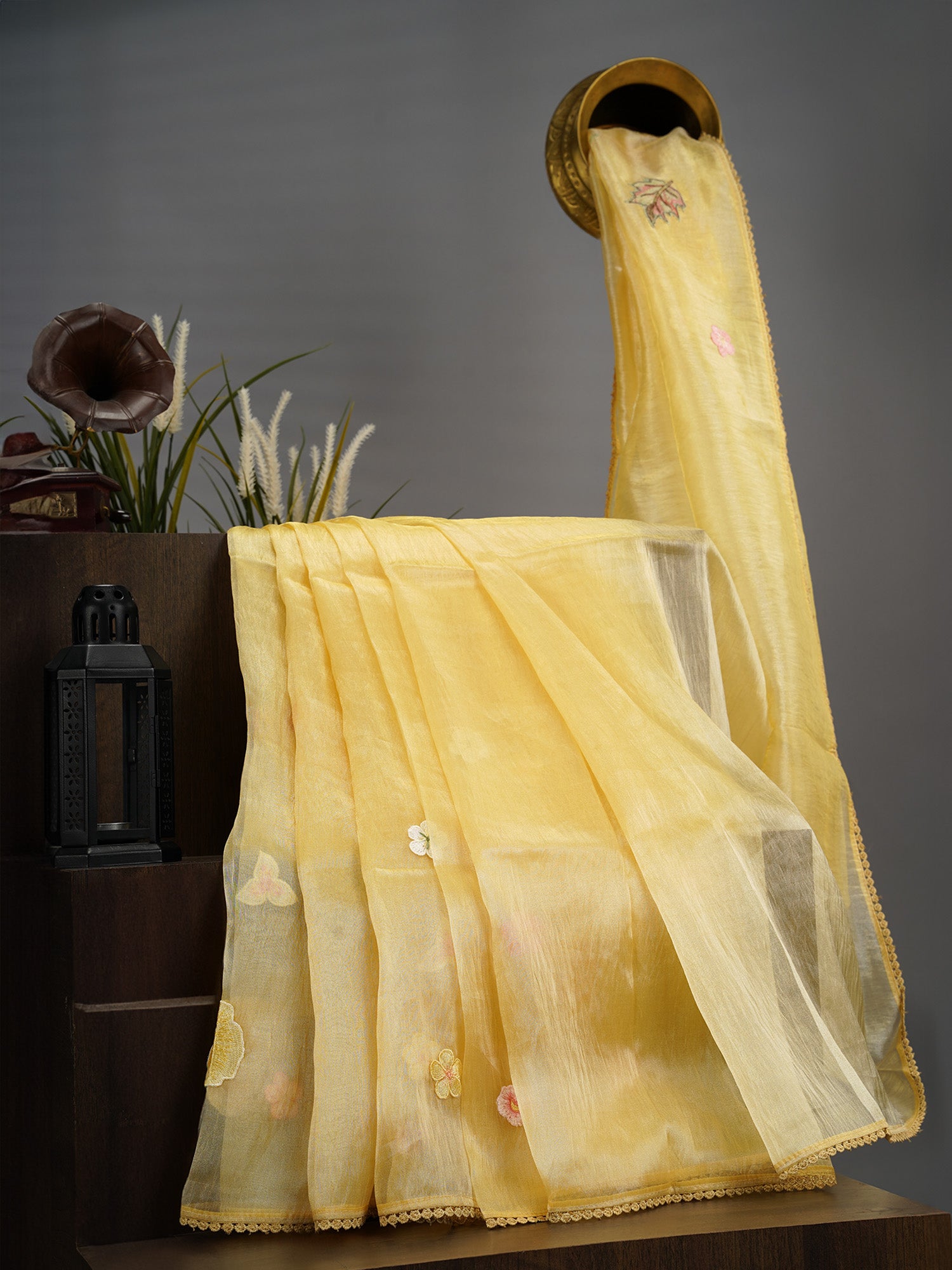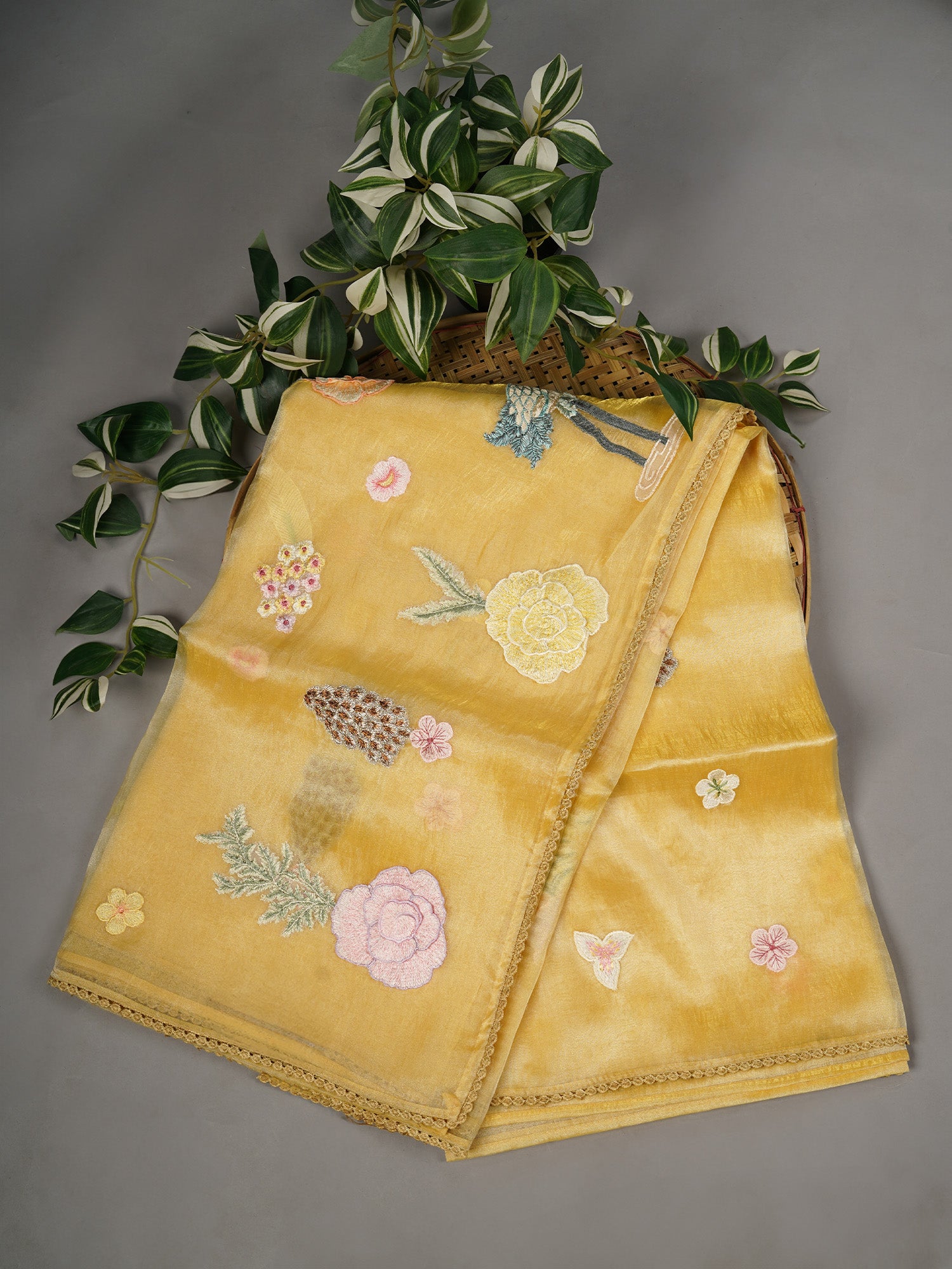 This Tissue Organza Lace Border in light yellow features delicate embossed work, adding a subtle texture and elegance to your...