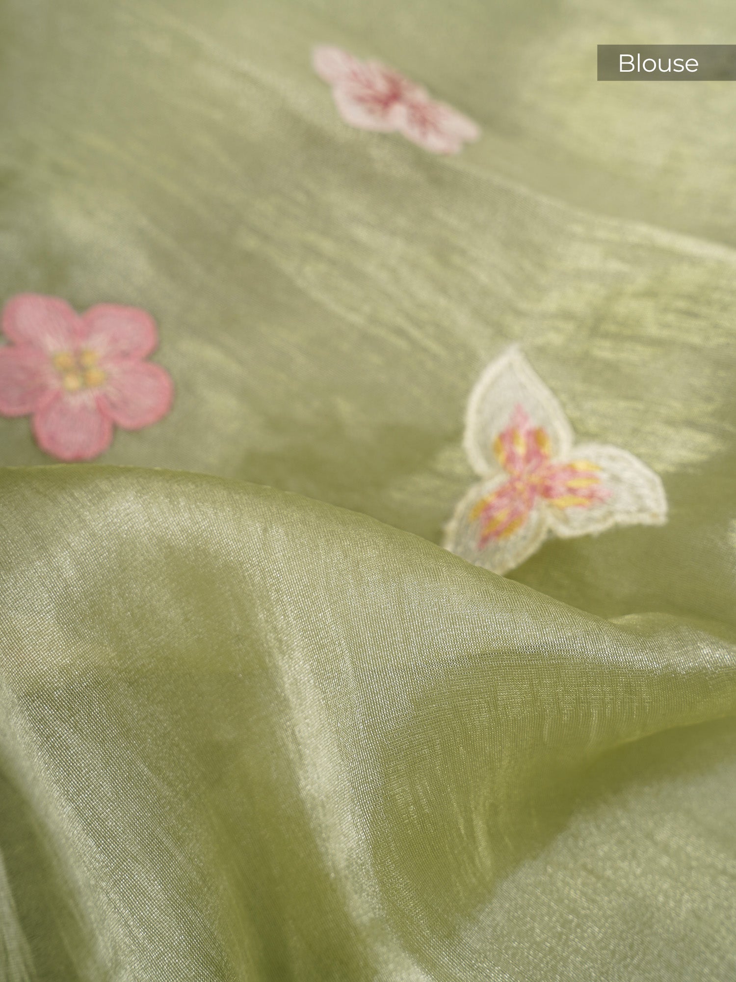 Tissue Organza Embossed Work Lace Border - Pista Green