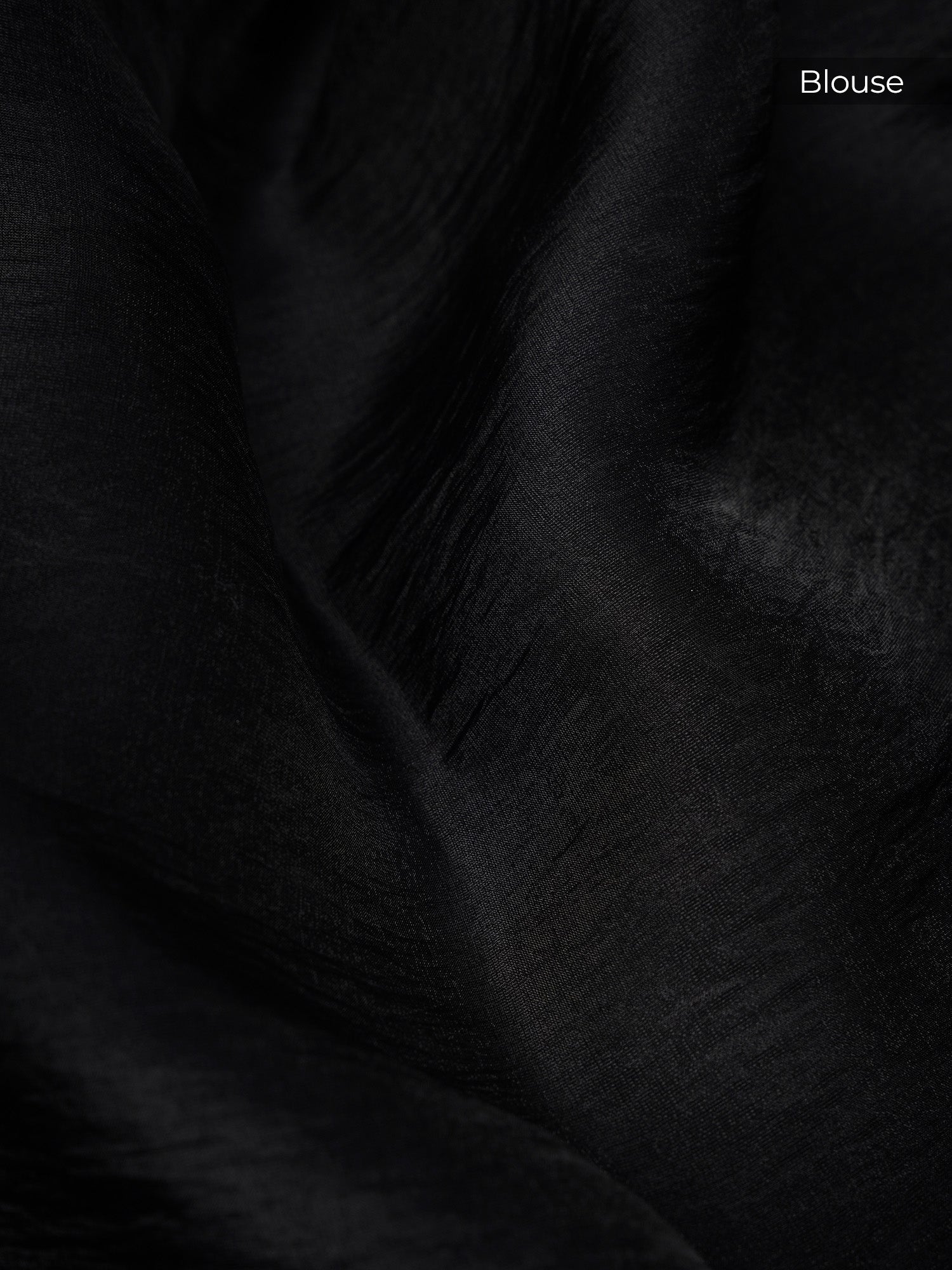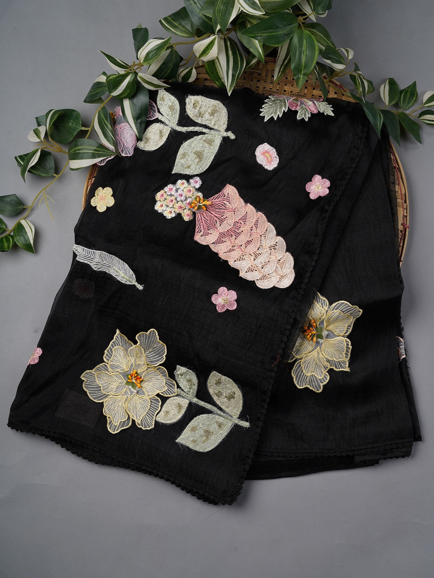 Tissue Organza Silk With Thread Embroidery Work & Lace Border - Black