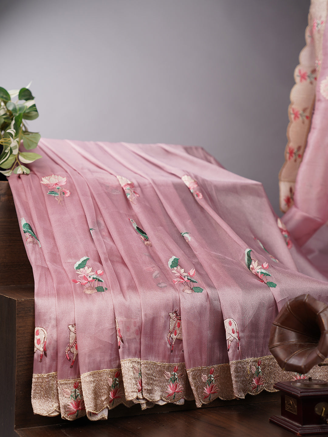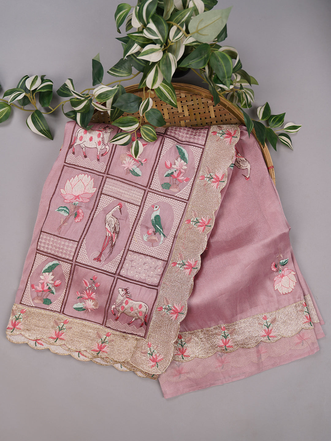 Tissue Soft Organza Silk with Zari & Thread Embroidery, Pichwai design