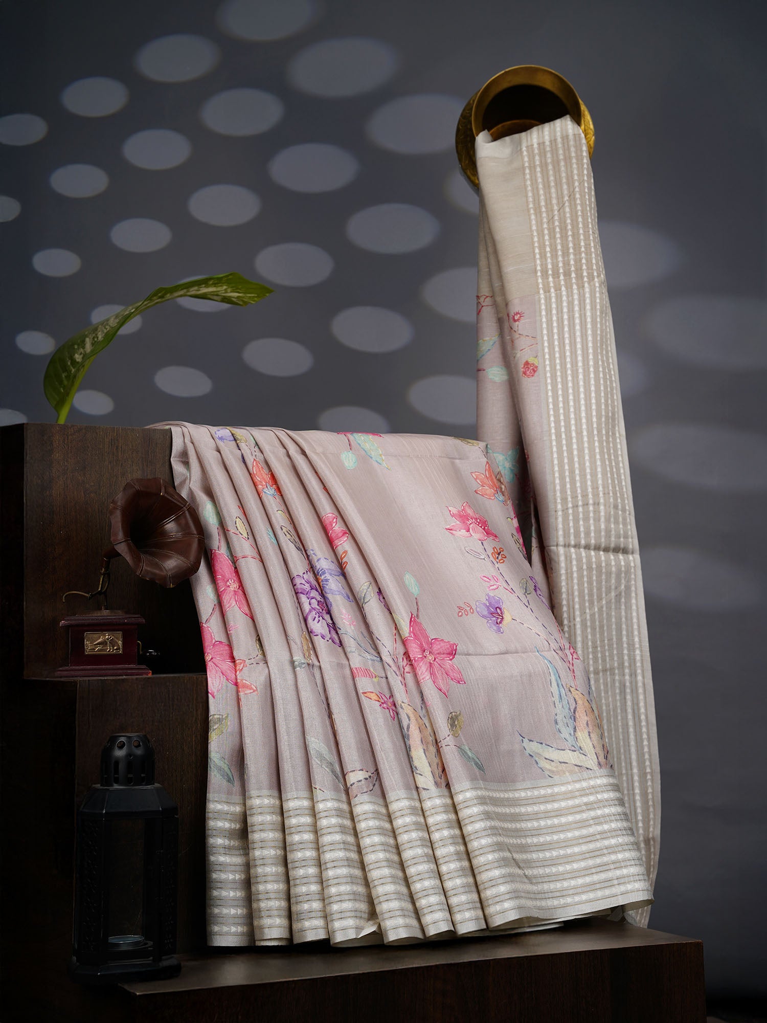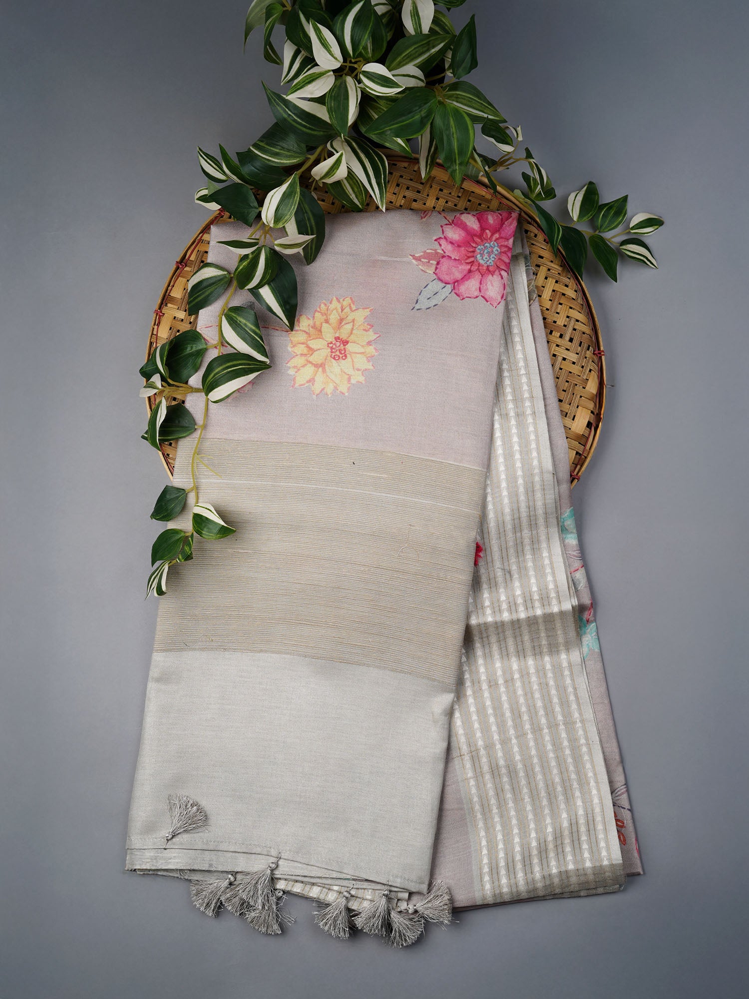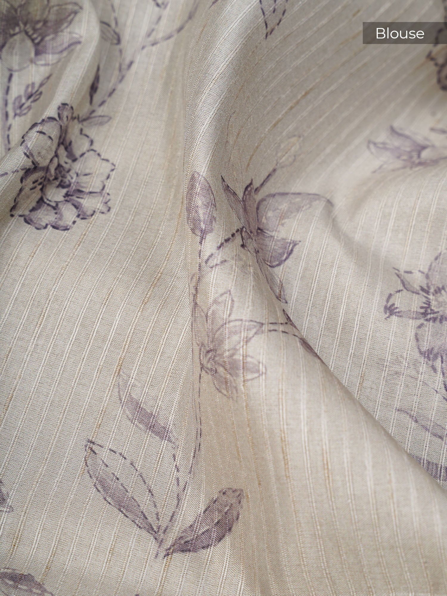 Tusser silk meets timeless elegance in this beige beauty, where soft, natural drape pairs perfectly with a charming floral print...