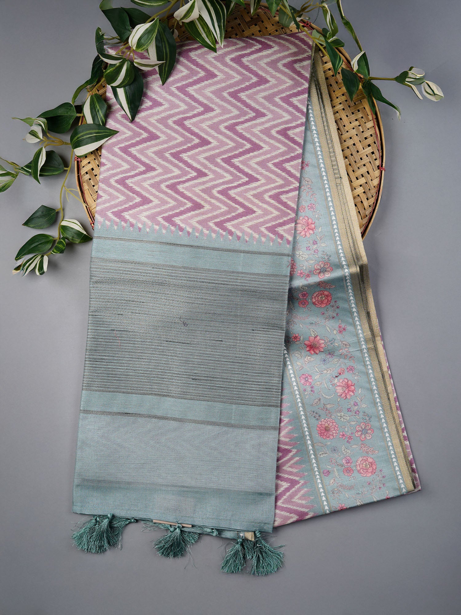 Tusser silk meets timeless elegance in this light pink saree, where delicate floral print borders dance along the edges. Soft, breathable, and naturally lustrous, tusser fabric drapes beautifully while keeping you cool and comfortable. Perfect for festivals, celebrations, or whenever you want to add a touch of grace to your wardrobe. The intricate floral detailing brings a playful charm that's both traditional and contemporary. Versatile enough for casual gatherings or special occasions, this saree is a wardrobe essential that never goes out of style.