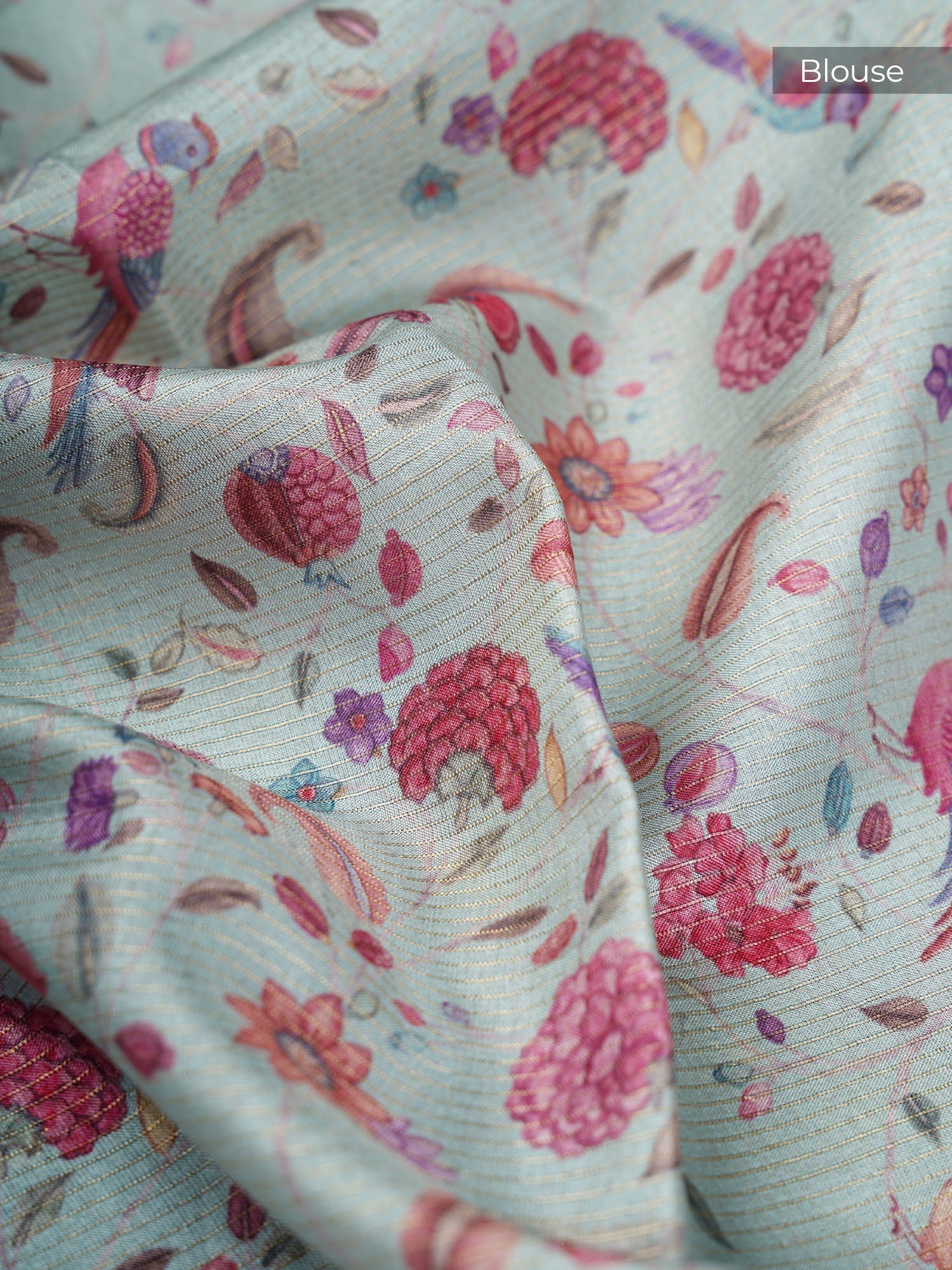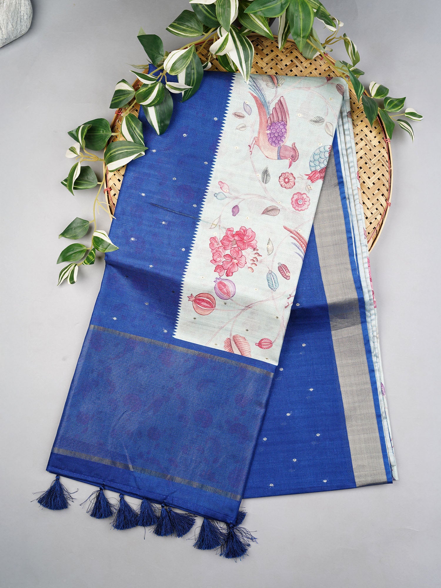 Discover the perfect blend of elegance and charm with this stunning Tusser Silk Saree! Adorned with delicate floral prints that dance across the fabric, this light blue beauty features a striking contrast border that adds just the right pop of sophistication. Tusser silk's natural texture brings an effortless grace to your wardrobe, while the playful floral design keeps things fresh and vibrant. Whether you're heading to a celebration or a casual gathering, this saree wraps you in comfort and style. A timeless piece that proves you don't have to choose between looking fabulous and feeling amazing.