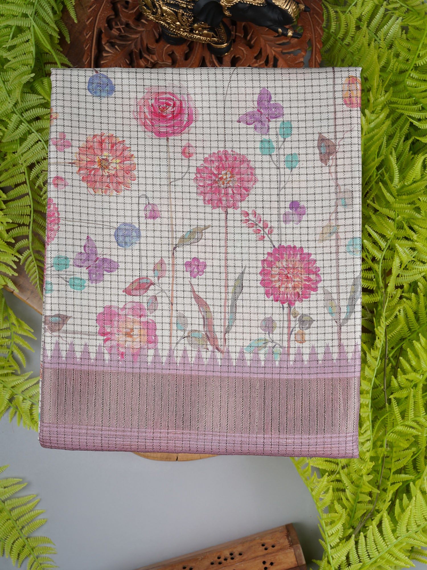 Tusser silk meets timeless elegance in this charming onion pink saree, where subtle weaving checks dance across the fabric with understated sophistication. The lustrous texture of tusser silk drapes beautifully, while the ornate zari border adds that perfect touch of glamour without overwhelming the delicate hue. Perfect for celebrations, festivals, or whenever you want to feel effortlessly graceful. The natural sheen catches light beautifully, making this piece a versatile addition to your traditional wardrobe that works for both intimate gatherings and grand occasions.